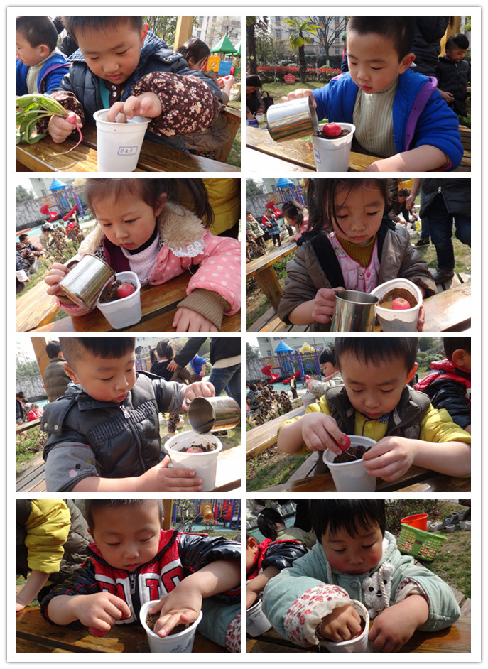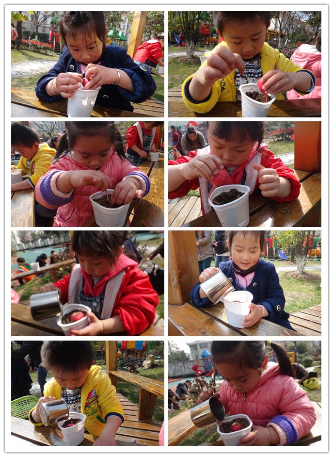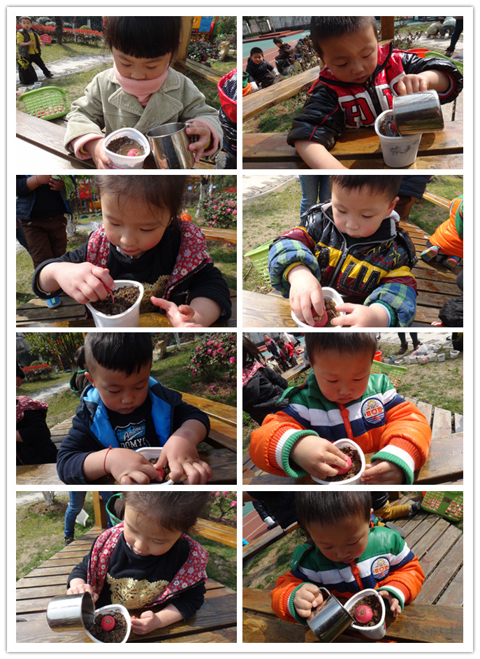春天来了,享受着春天的阳光,我们在幼儿园的小花园里种