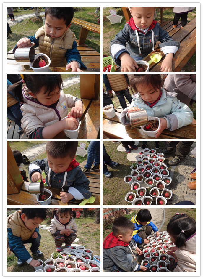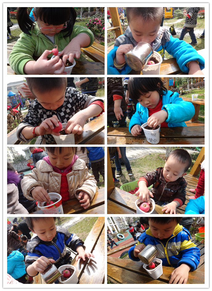 植杨花萝卜咯~~我们将土壤里挖个小洞洞,将萝卜小心翼翼地放