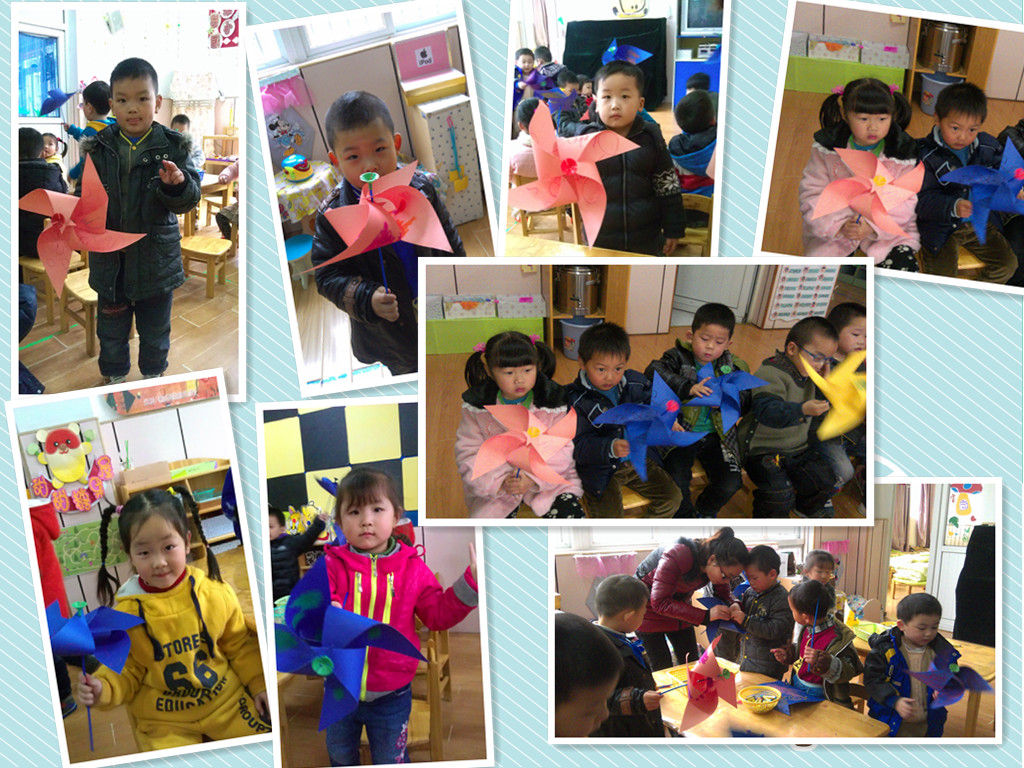 本次活动目标是锻炼幼儿的动手操作能力,学习风车的制作方法并学习用简单的线条装饰。整个活动孩子们情绪高昂,积极性极高,小手十分能干!接下来请您欣赏孩子们的杰作吧!