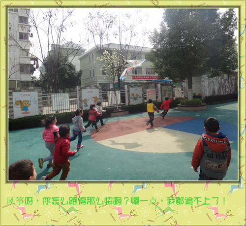 接着,老师带我们到操场上放风筝。看着我们奔跑的身影,有没有想起一首歌:天上风筝在天上飞,地上人儿在地上追.......