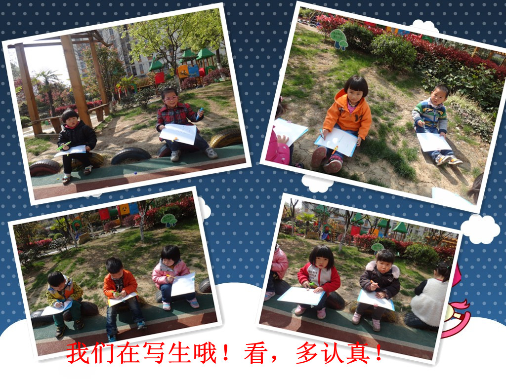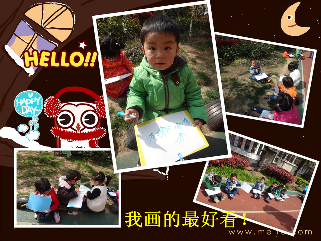 春天到了,小草发芽了!我们拿上自己的小画架和小画笔,跟着老师来到美丽的翠幼蝌蚪园写生!看看小草在哪里?O(∩_∩)O哈哈~这儿一片,那儿一堆!怎么这多小草啊!老师说:“小草的生命力最旺盛了,哪里都可以生长小草哦!”我们这里看看,那儿摸摸,好了,我记住了,于是我们开始写生啦!一起来看看在认真作画的我们吧!