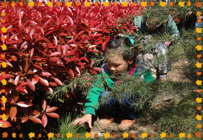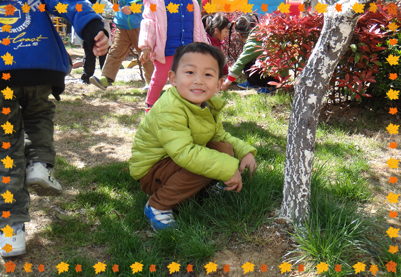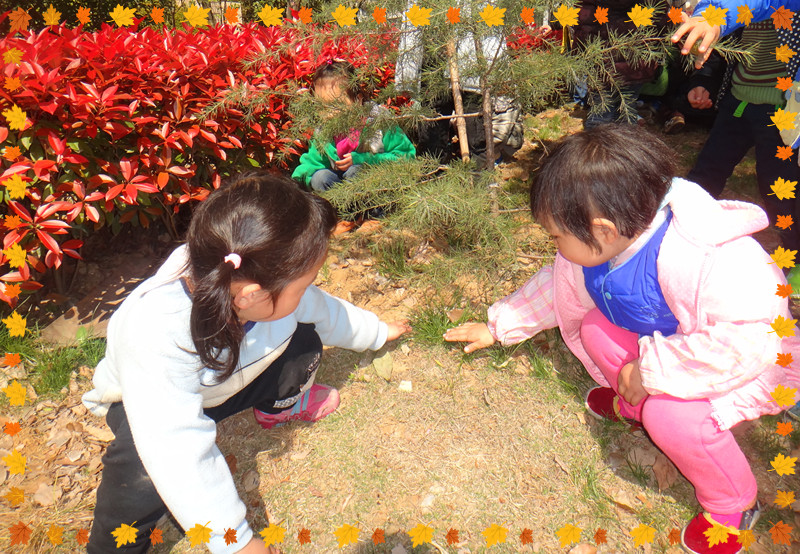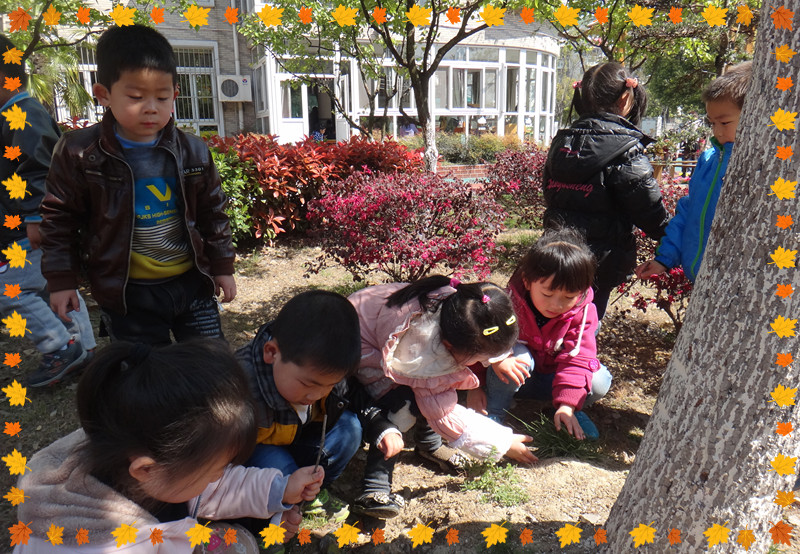 春天到了,小草从地底下长出来了。那刚刚长大的小草是什么样的呢?我们来到了幼儿园的小花园,眼睛看看,小手摸摸,小朋友们看的可仔细了!