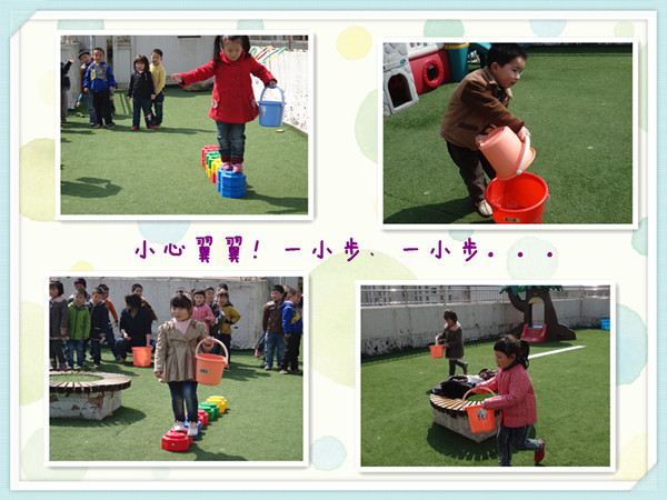 运水的过程有一定困难哦,我们的前方有三座高矮不同的独木桥!我们要提着水桶从独木桥上走过,不能将宝贵的水资源洒掉,更不能掉入河中哦!