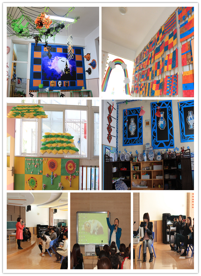 集中培训与介绍告一段落后,各片区园教师便迫不及待的参观了小、中、大三个年龄段的区域游戏现场,一楼艺术长廊中的“炫彩魔方”、“熊猫之家”、“森林小屋”里琳琅满目的操作材料,新颖独特的游戏方式引领孩子们畅游在神奇的空间艺术里;二楼童话世界中的“维尼乐园”、“魔法王国”中可爱形象的维尼小熊和神奇有趣的的魔术游戏带领大家领略了童趣童真的魅力;三楼翠屏小镇中的“秦淮人家”那古色古香的青花系列、农家别院处处散发着令人回味的民间韵味。浓浓的游戏氛围更是吸引了前来观摩老师们的主动参与,生活化趣味化的游戏环境、多元性层次性的游戏材料、适时巧妙的游戏指导、宽松愉悦的交流情境让所有老师直观地感受到了孩子们在游戏中自发的快乐、自由的表达、自主学习。