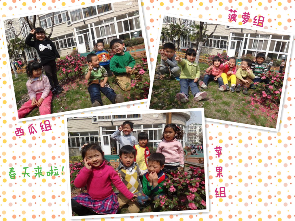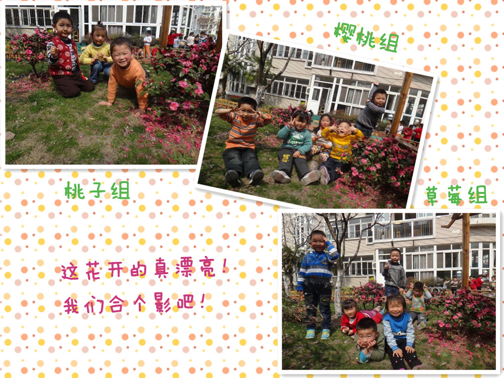 春姑娘终于来到我们身边啦!还带了美丽的礼物—小花、绿绿的小草,还有暖暖的天气。我和小朋友也忍不住来拍照,留下美丽的瞬间!