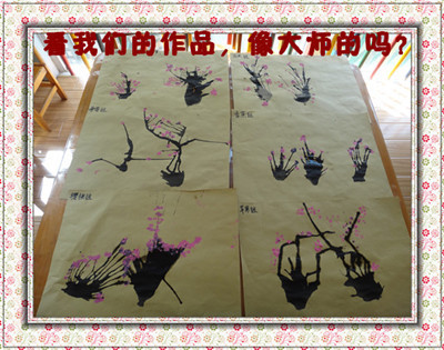 本周我们的特色课是《吹画》。老师介绍完做法后,我们就迫不及待地准备行动起来:先吹树干,再用手指点上花瓣。瞧!我们个个都很认真哦!