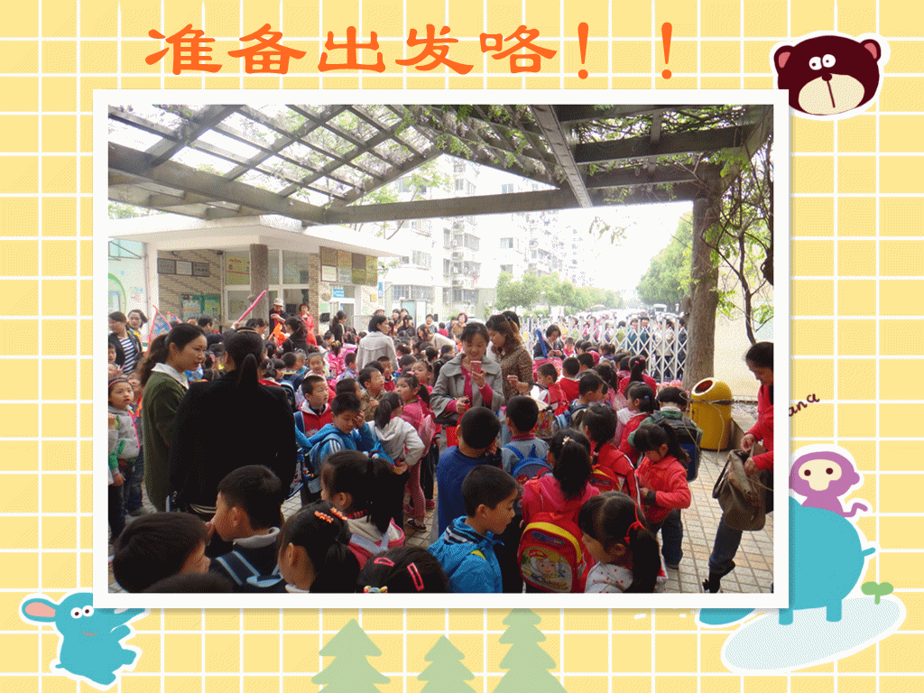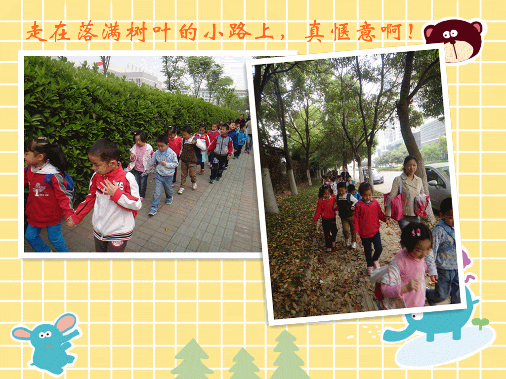 “走走 走走走,我们小手拉小手,走走,走走走,一同去郊游!”我们背着小书包,手拉着手,边走边唱,真快乐!!