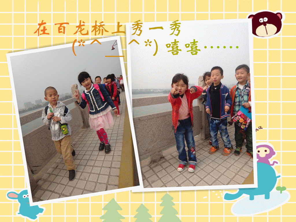 从幼儿园一直走到百龙桥,我们都不觉得累,个个喜笑颜开哦!!