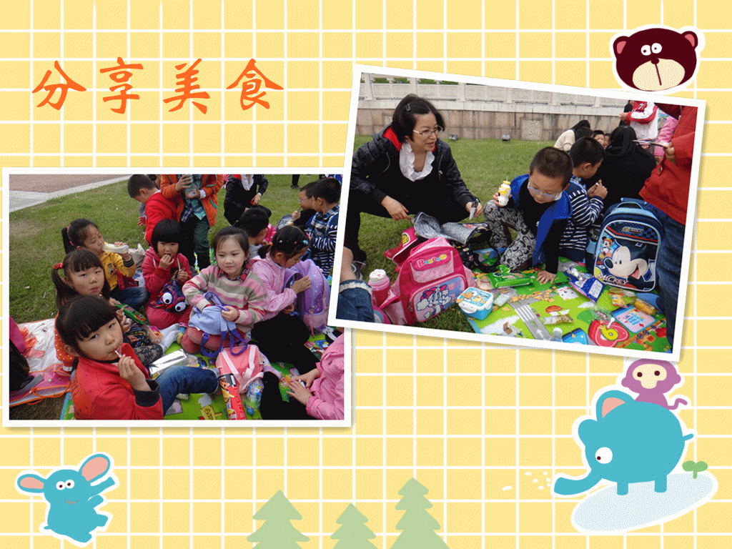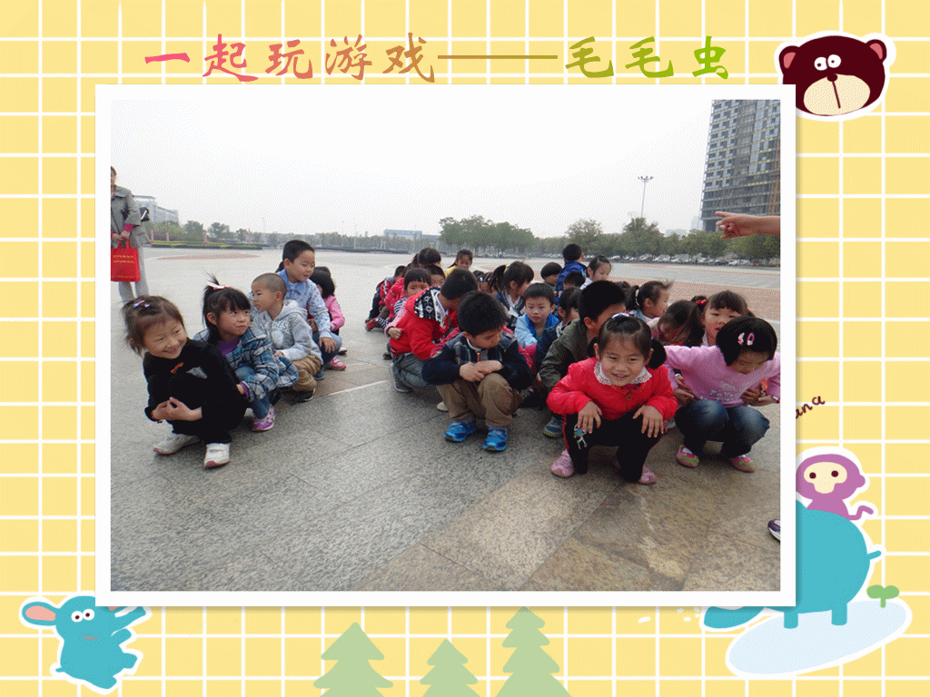 吃饱喝足,我们玩游戏吧!先玩毛毛虫、再玩听数字找朋友、还一起放了风筝。