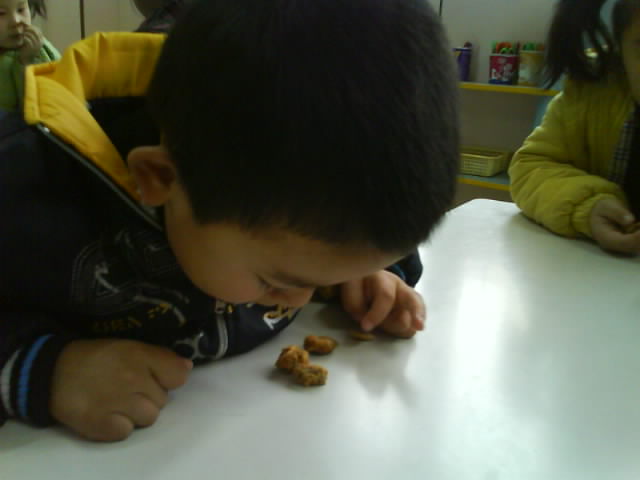 老师出差回来了,带了好吃的。我要仔细闻一闻味道。 我得仔细品尝品尝,是什么味道!