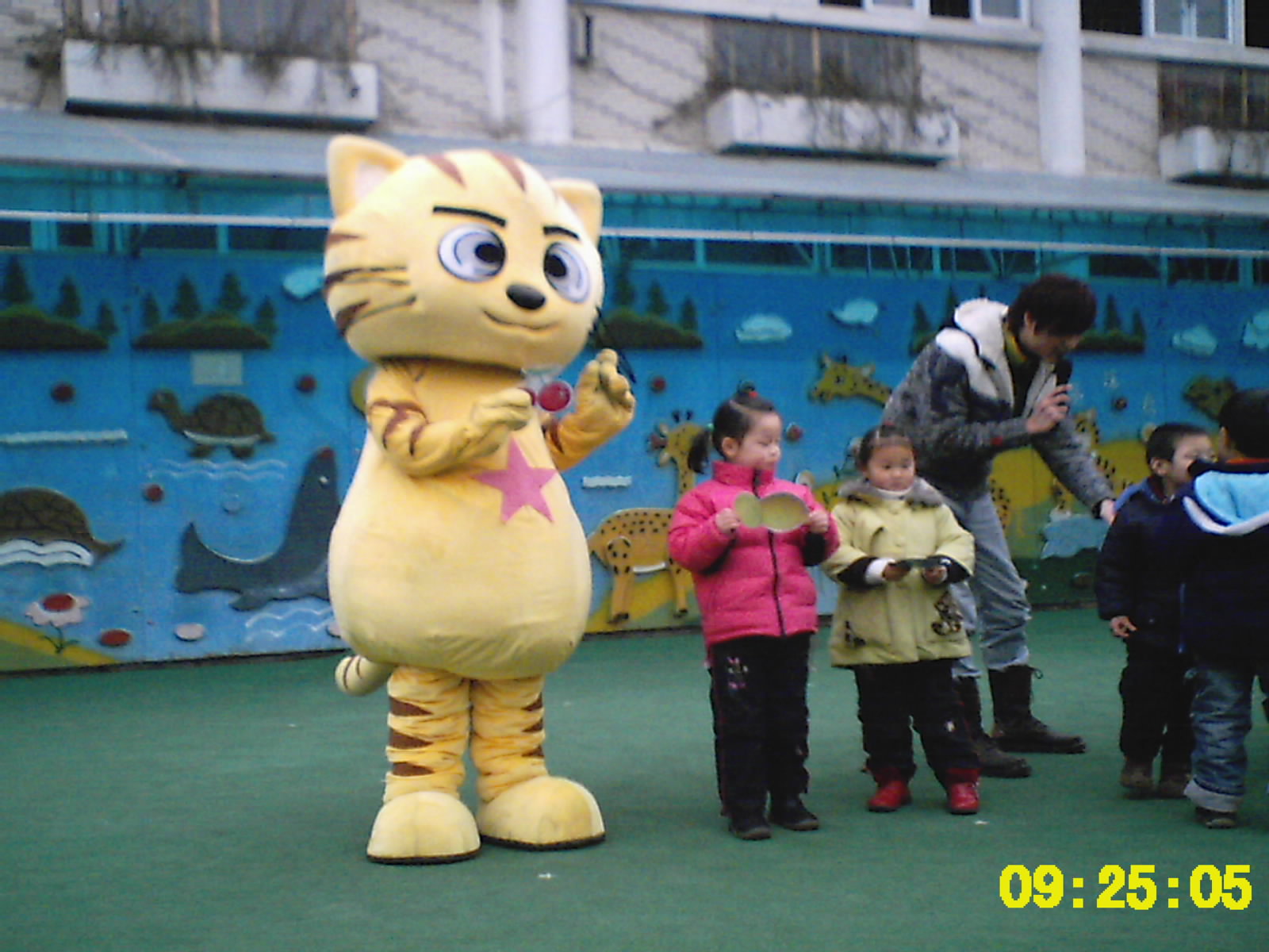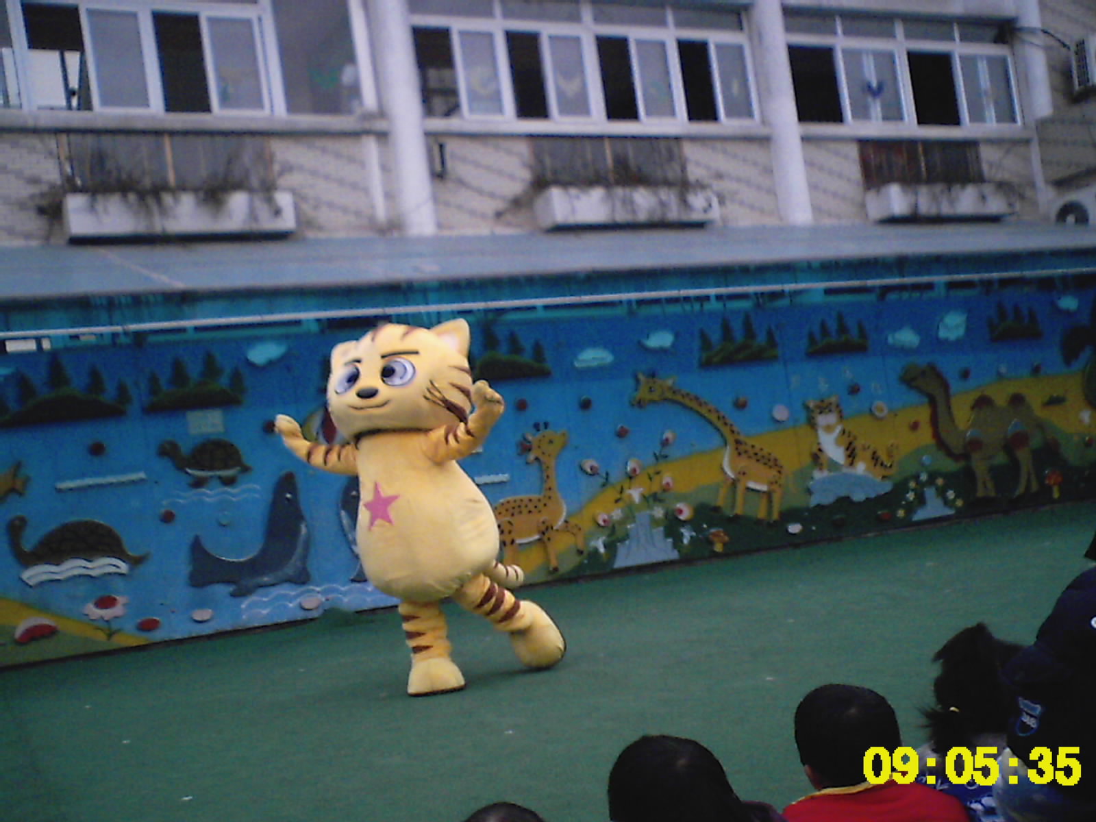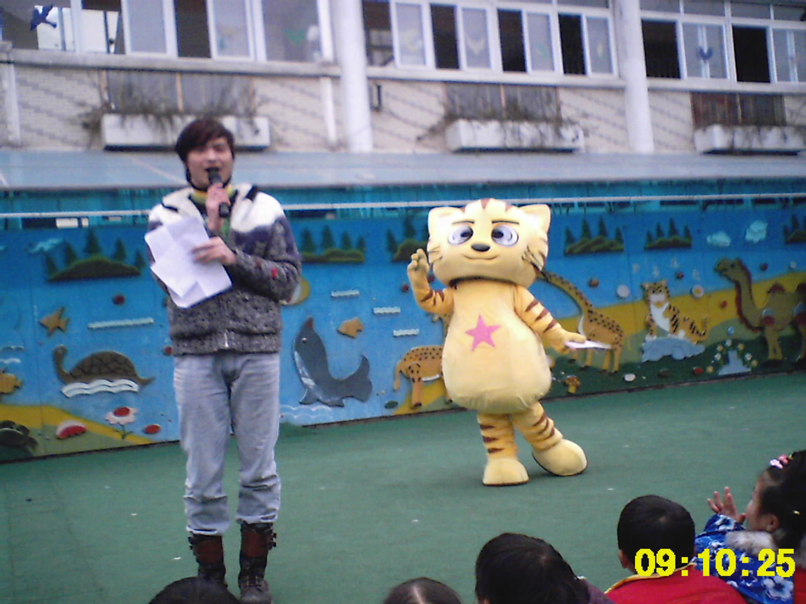 一起和快乐星猫跳《快乐星猫》舞吧。 我班的何厚艳邀请参加趣味游戏呢。