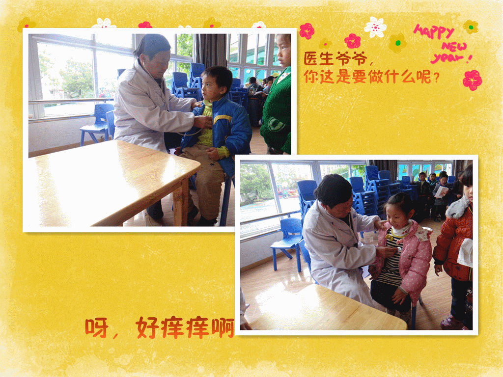 健健康康过六一 春天是生长的季节,是长个子的季节,我长高了吗?我的身体棒吗?保健院医生来为我们体检啦!医生帮我们看一看、听一听,还验血咯,有的同伴吓得哭了,可是很多同伴都很勇敢,一点都不怕!! 医生你在听什么呀?哦,是听听心跳是否好听,对吧?
