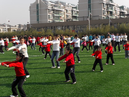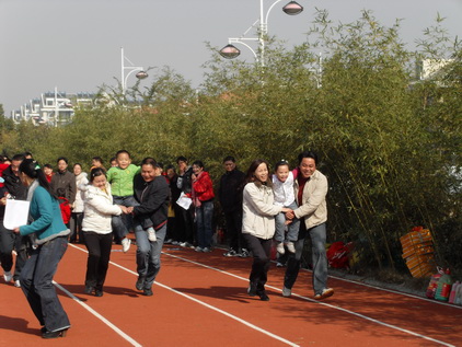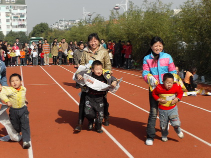 “爸爸和妈妈加油啊!我们要得冠军!”