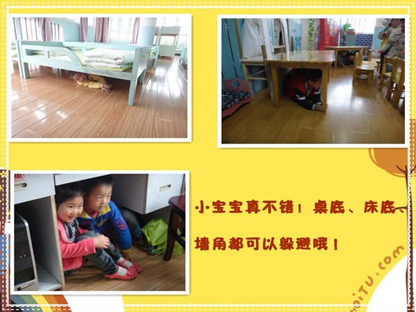 每年的5月12是我们国家的防灾减灾日哦!园长妈妈给我们带来了怎样合理避震的知识,我们学到了很多哦!