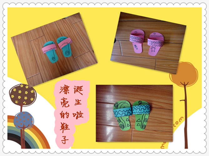 我的纸凉拖做好了,漂不漂亮啊?我要赶紧试试我的新鞋子啦!