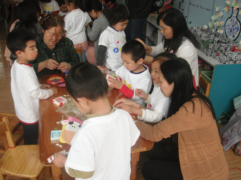 “六一”是我们的节日。31日上午,爸爸妈妈就来到幼儿园,提前给我们过节了。瞧!他们和我们一起做帽子,印T恤。带上我们亲手做的帽子,穿上自己印花的T恤,我们的心里,别提有多开心了!