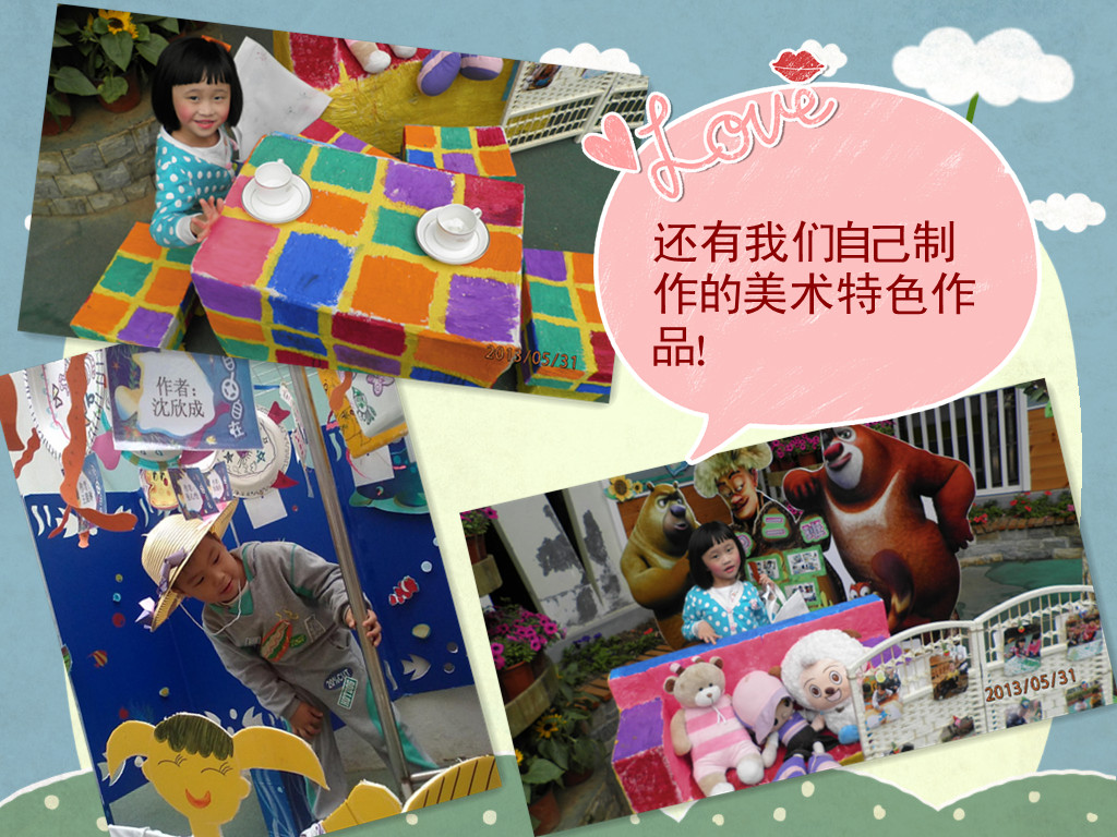 今年的“六一”儿童节跟以前都不一样哦,我们小朋友跟爸爸妈妈一起来幼儿园庆祝我们的节日,我们一起制作一些有趣的美工作品,想不想知道我们都做了哪些东西,走!跟我一起去游园吧!