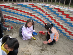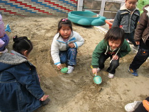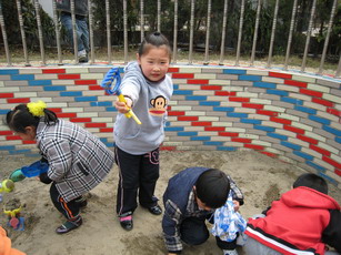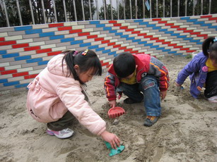 我要换个地方再找找看。 老师!我找到啦!原来你把笔藏到沙里啦!伙伴们,你们也加油啊!
