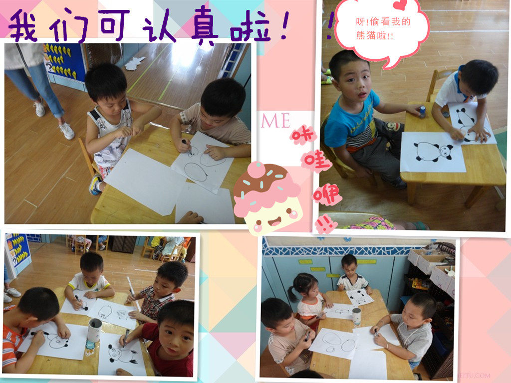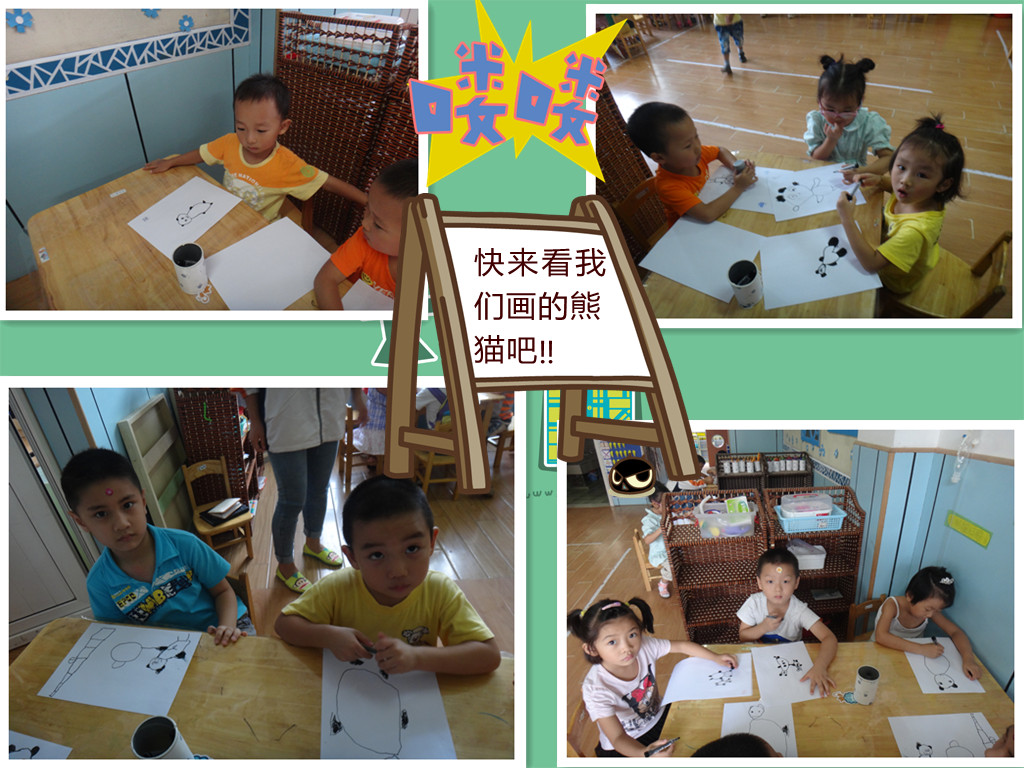 最后,小朋友们都迫不及待的抓起笔开始把熊猫的样子给画出来了!