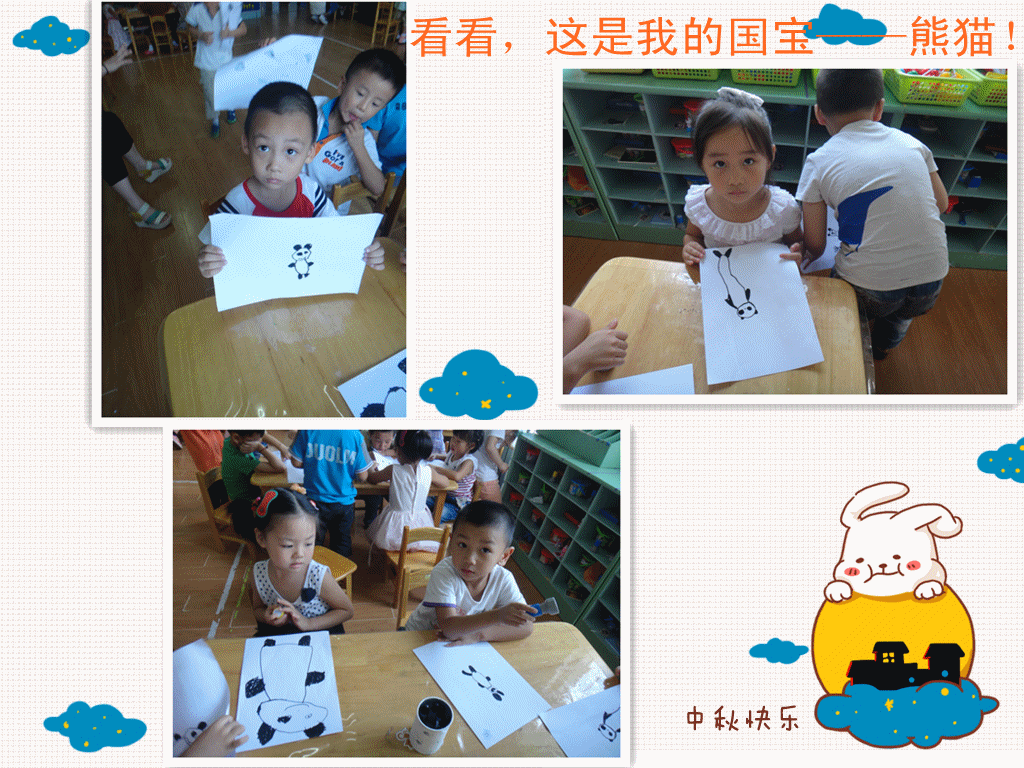 小朋友们通过图片认识了熊猫的外形特征;还看了视频,了解了熊猫的生活习性;知道大熊猫是国宝,都想要关爱和保护熊猫呢!