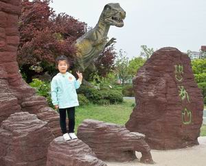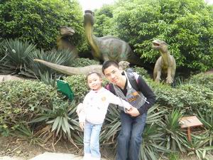 今天我们来到了恐龙园,真开心! 瞧瞧我的后面是什么哟