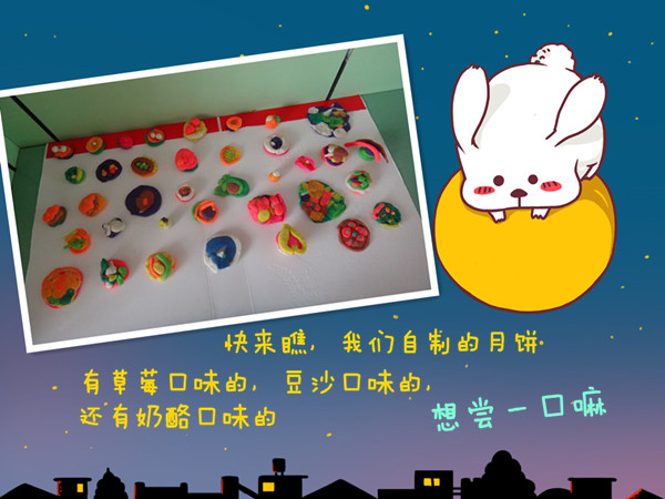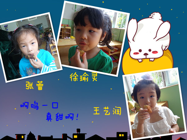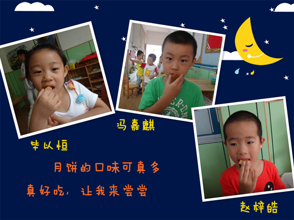 大家快来呀,快来参加我们中二班的“月饼品尝会”。这里有好多好多的月饼哦,巧克力味的、豆沙味的、蛋黄味的,还有冰淇淋味的雪月饼呢。今天可真热闹,品尝完了各种好吃的月饼,我们还动手自制了“油泥月饼”,快跟我一起来看看我们的热闹的一天吧!