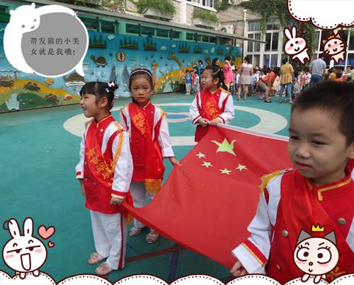 朋友们,你们看到那个带着粉色发箍的小美美了吗?那就是我——来自大四班的陈嘉禾啦。我担任本周的护旗手。在护送国旗的过程中,我有点紧张,但更多的是自豪。我想大声说,我爱我的祖国,我以自己是护旗手而感到光荣。