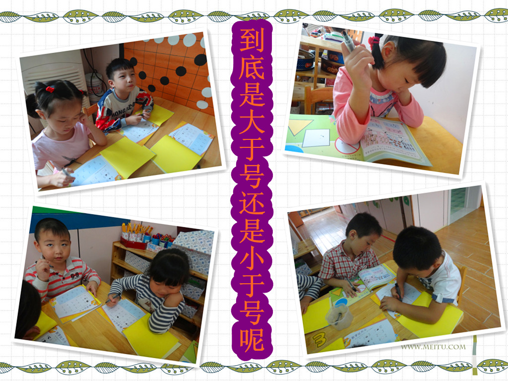 今天认识了新的数学符号,大于号,小于号,该怎么用呢?来看看我用的对不对。