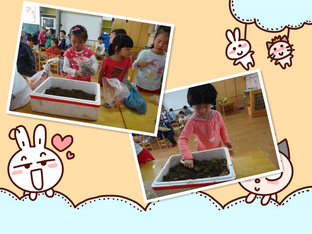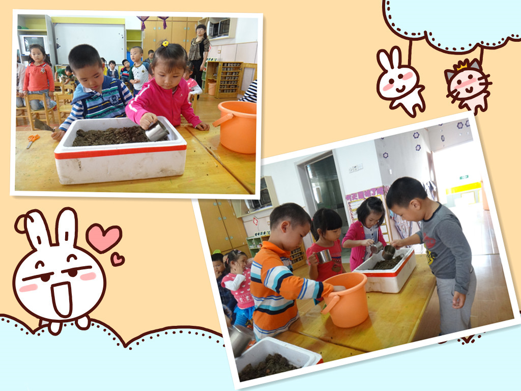 秋天是收获的季节,在观赏了各种植物、种子后,我们的孩子开始种植的活动,首先认识了大家准备好的种子,有熟悉的青菜籽、菠菜籽、茼蒿籽……在比较中我们发现了他们的不同之处,同时也猜想过它们长大后会是什么样呢?在好奇、兴奋中,拿上铲子、水杯经历了第一次的播种!