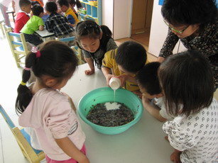 加上白胶。 搅一搅,变均匀,变成了纸浆。