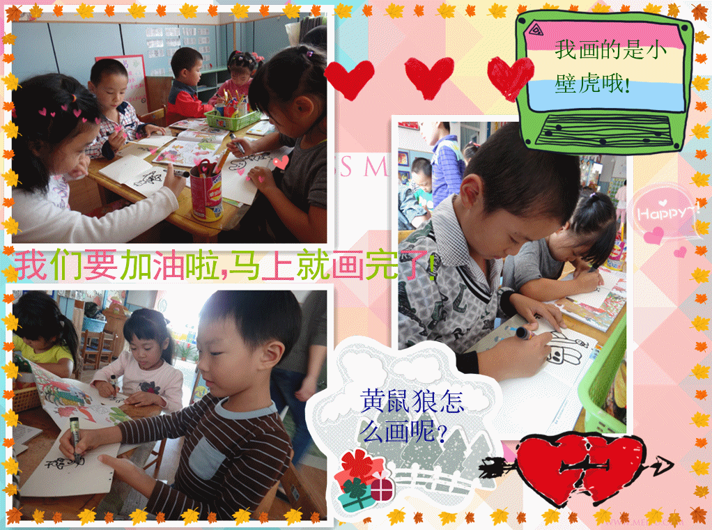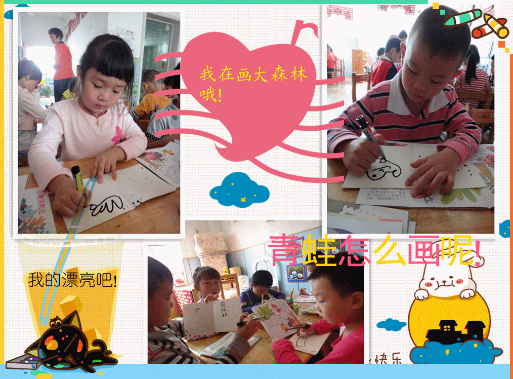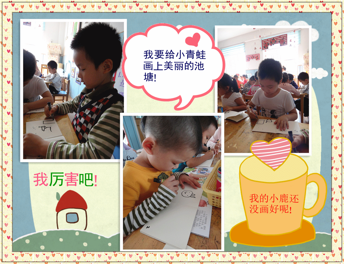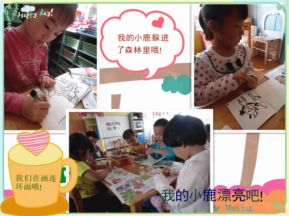 我们很快就画好了小鹿历险记这本连环画,大家都好开心哦,我们还要给连环画涂上了美丽的色彩呢,真漂亮!