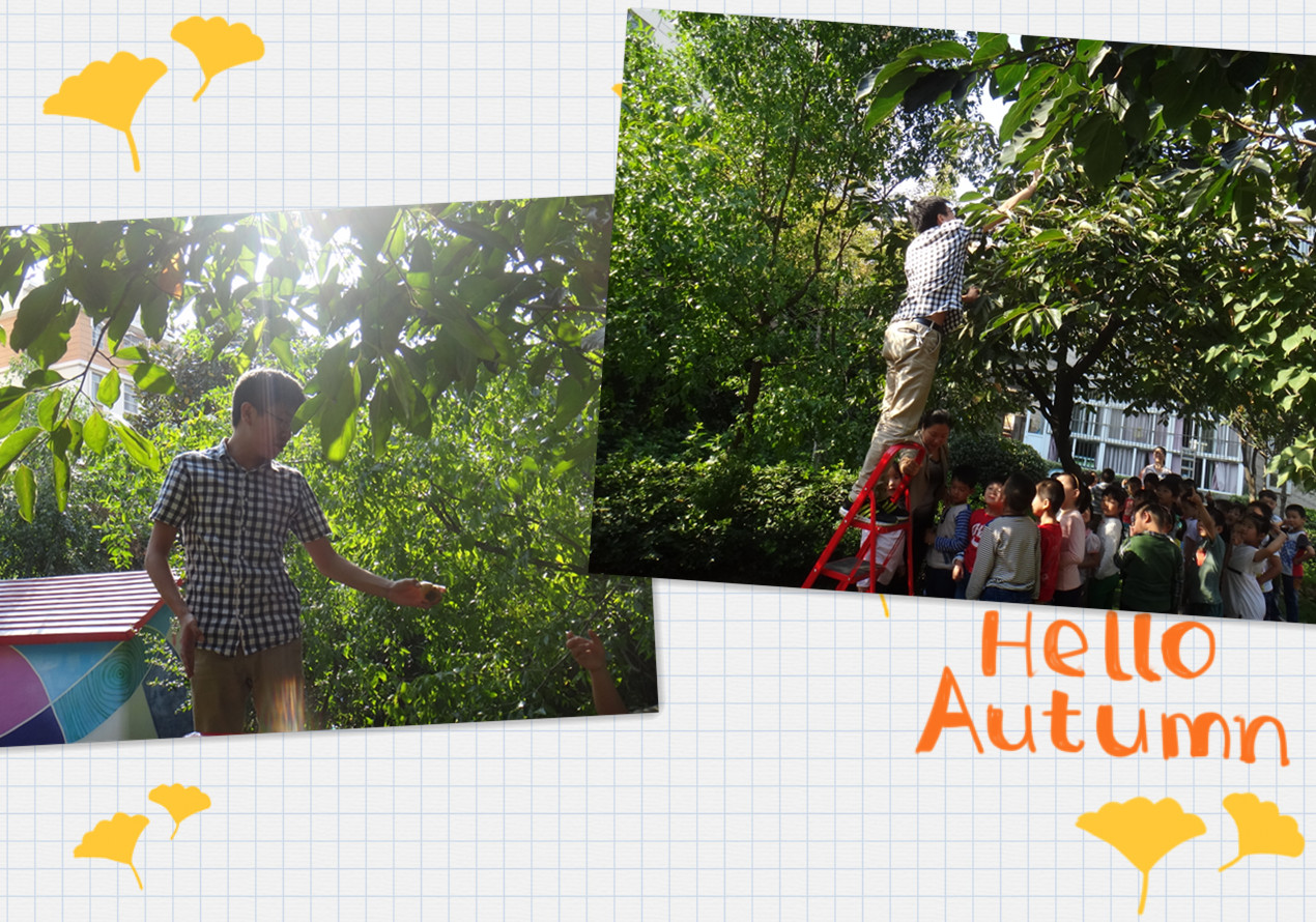 金秋十月,硕果累累!转眼又到了丰收的季节,身在城市的我们虽然没什么机会去看一看那满眼的金黄,但在幼儿园里,老师满足了我们一点小小的渴望。你看,我们幼儿园的柿子结了一树,老师还特地请来了男“外援”——李老师来给我们帮忙,捡到柿子真开心!爸爸妈妈,什么时候带我们一起去看丰收呢?