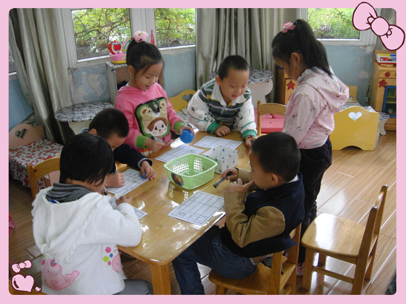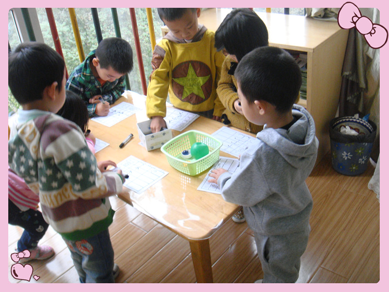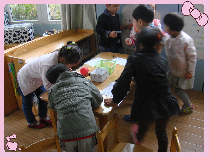 下面是我们在猜想哪些东西能沉在水面呢?哪些东西能浮在水面呢?我在很认真的思考呢。