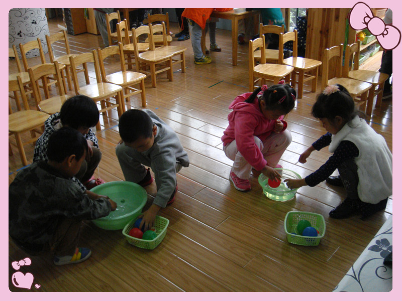 今天我们上了一节沉浮实验课,好好玩呀,有些东西能沉在水底,有些东西能浮在水面上。