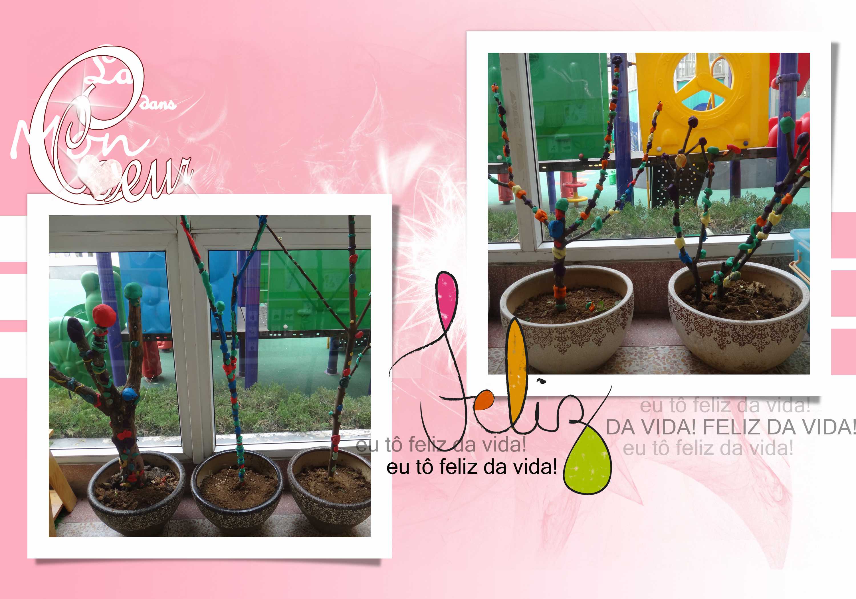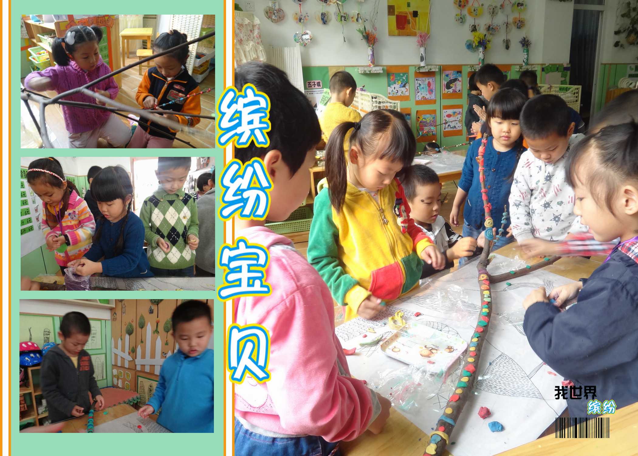 活动中,我们大胆发挥想象,用彩泥做出了很多东西来装饰树枝。我们做了树窝、小蛇、蜗牛、树叶......只要是树上有的我们都能做出来哦!最关键的是,我们还做了树上没有的“游戏机”,这个“游戏机”是给小鸟、松鼠和其它小动物玩的,相信它们一定很开心!