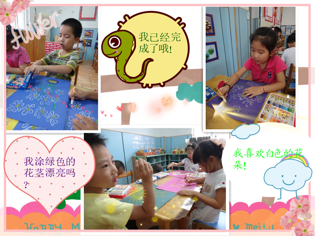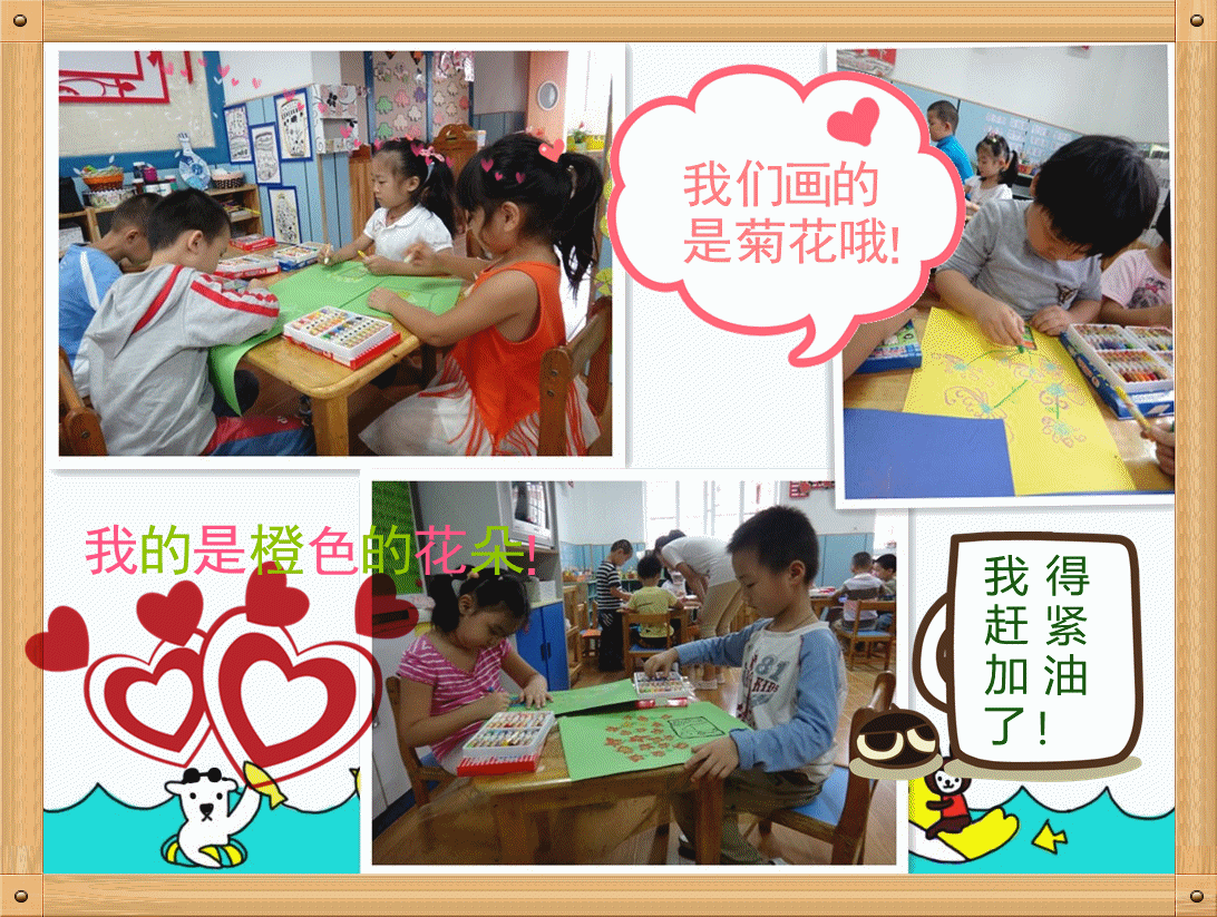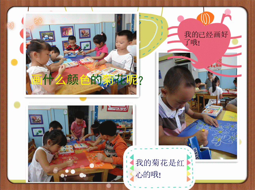 我们要画五彩的菊花啊,各式各样的,漂亮吧!