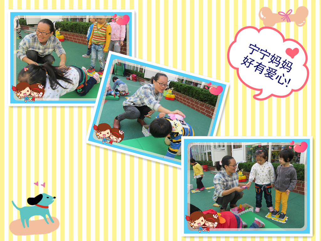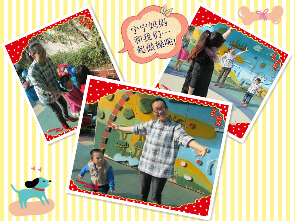 暖暖的阳光照身上,宁宁妈妈和我们小朋友一起做早操,伸伸臂,弯弯腰......