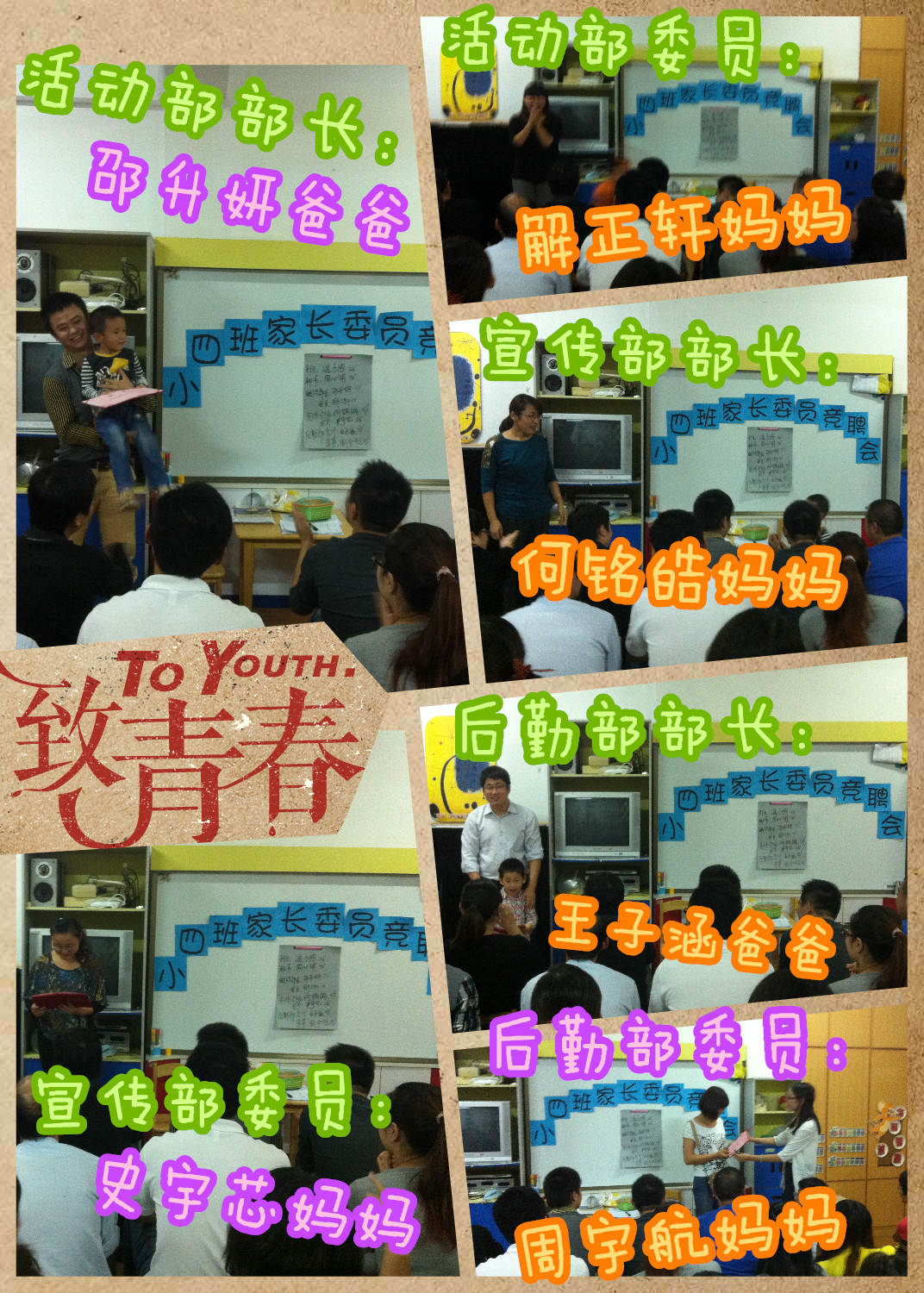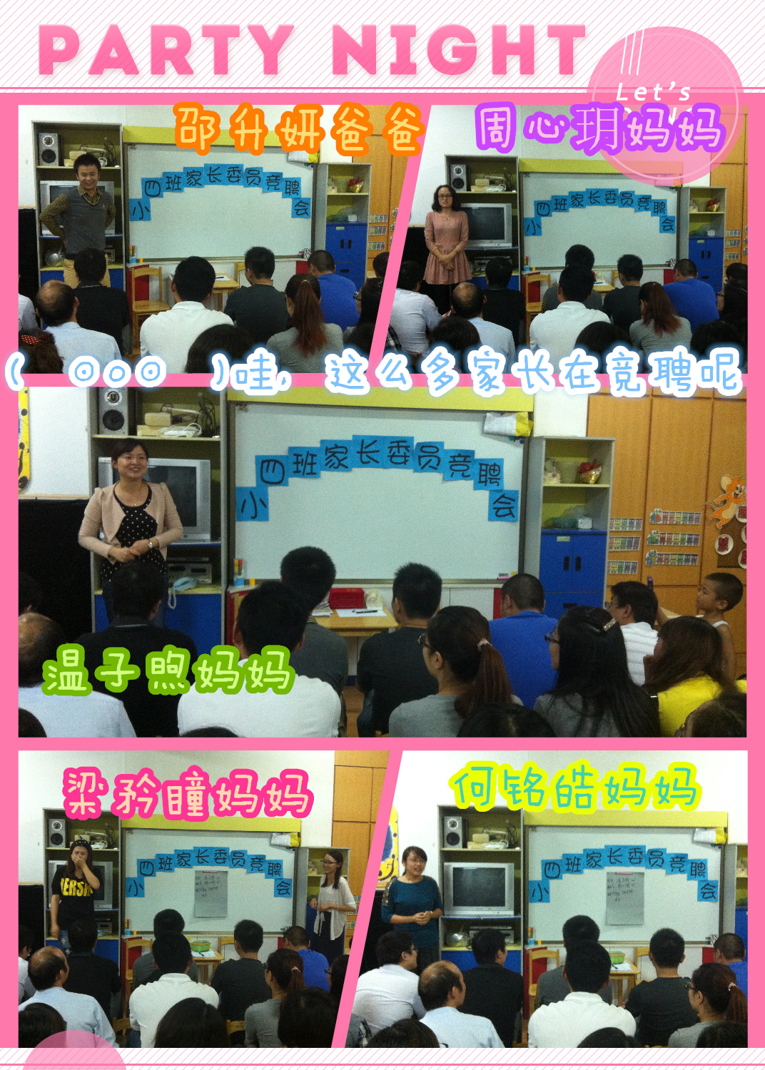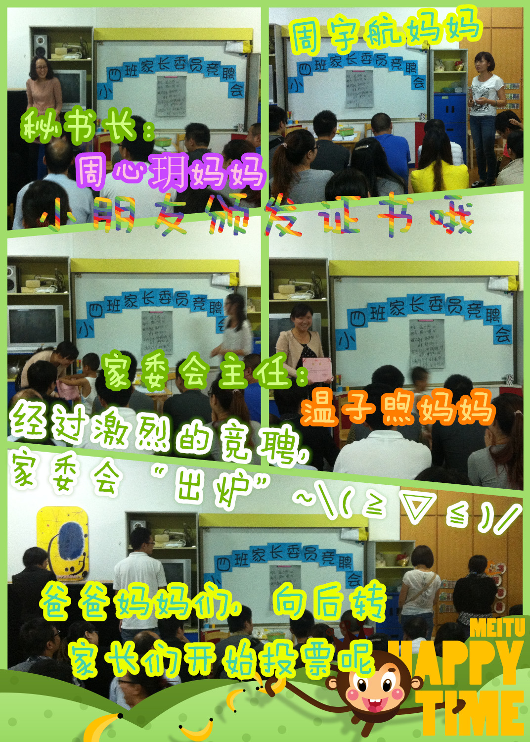 没到现场后悔了吧!!经过激烈的竞聘,小四班家委会终于“出炉”~\(≧▽≦)/~啦啦啦~~有哪些爸爸妈妈成为了家委会成员呢,我们一起去看看吧~~~GO~~