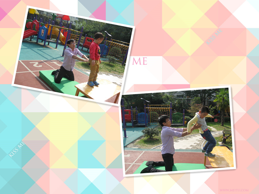 我们站在桌子上,勇敢的往后倒。李老师在后面接住我。