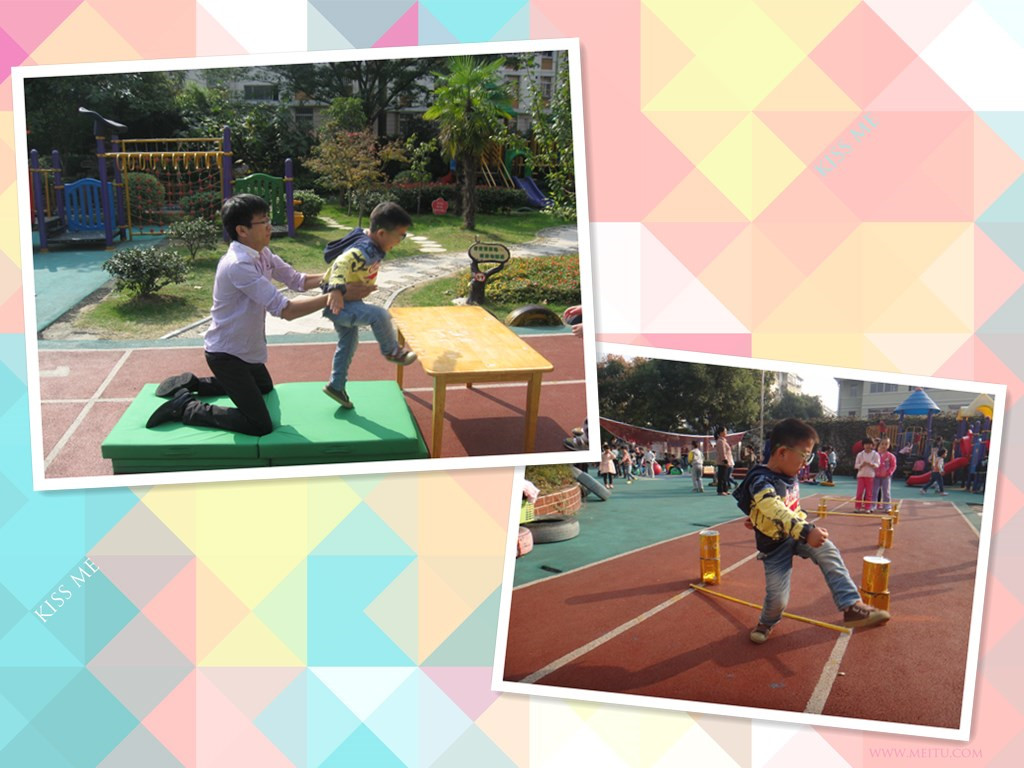 今天李老师来给我们上体育课,让我们练习助跑跨跳。