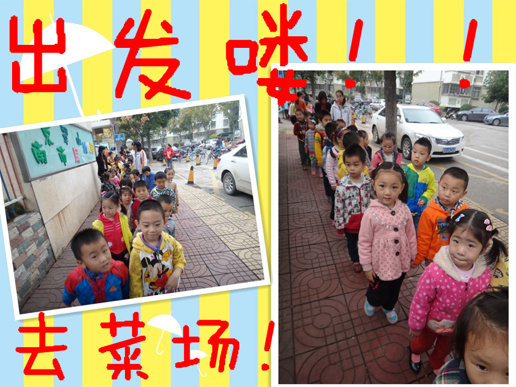 早上八点四十,我们从幼儿园开始出发了!小朋友们排着队,手拉着手,一起向菜场进发!