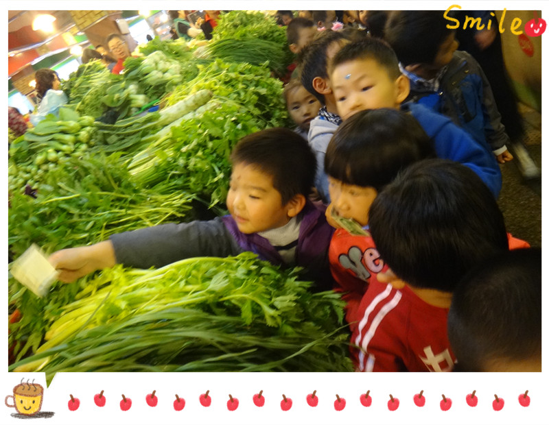 一到菜场,翠绿的的青菜、红彤彤的番茄、长长的豇豆等琳琅满目的蔬菜等让孩子们目不暇接,大家个个争着与蔬菜来个“亲密接触”,有的忍不住伸出小手摸一摸蔬菜的形状、有的争着闻一闻蔬菜的气味,有的与同伴相互交流着蔬菜的特点:“南瓜有长长的还有圆圆的,辣椒有红的还有绿的”。卖蔬菜的叔叔阿姨也不厌其烦地回答着孩子们提出的一个又一个问题,还不时向孩子们介绍各种蔬菜的营养价值,一时间菜场内热闹非凡。