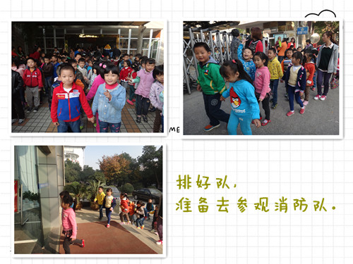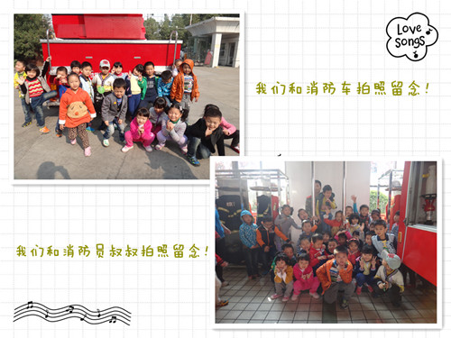 10:20——参观结束,我们和消防员叔叔合照留念,准备回幼儿园咯。今天虽然走了好久的路,但是我们觉得很开心,谢谢消防员叔叔!