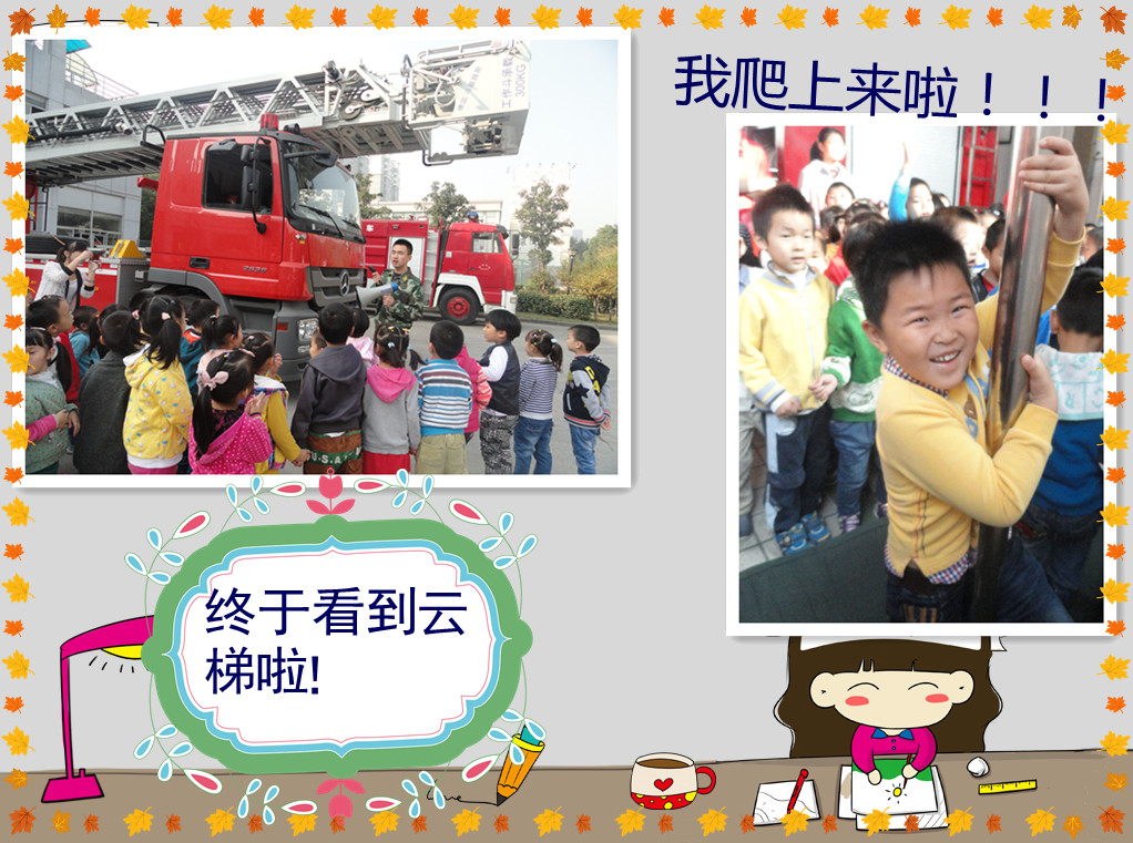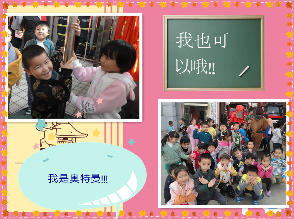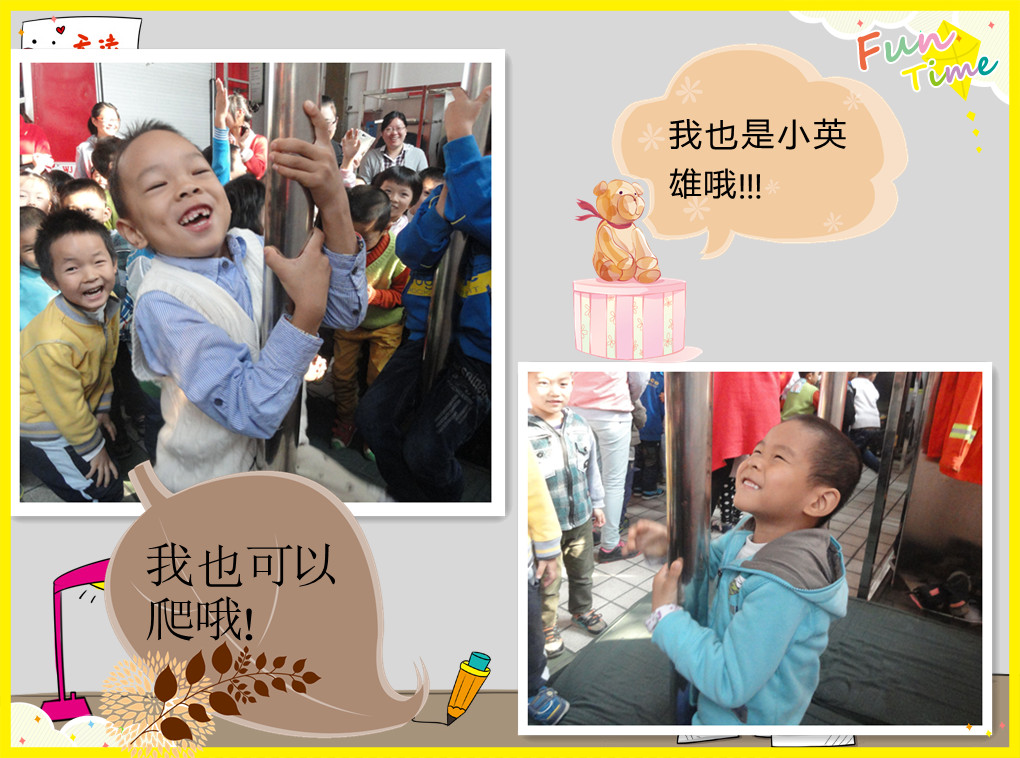 我也和消防员叔叔一样爬上杆子啦!看我棒不棒!!