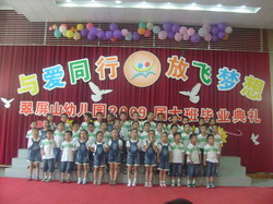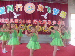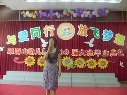 首先,戴湘萍园长深情地回顾了孩子们三年来在翠屏山幼儿园学习生活情况,取得的点滴进步,衷心地感谢了各位家长对幼儿园工作的支持和配合,翠屏山小学孙军校长也对孩子们提出了“讲礼貌、身体棒、爱学习”的殷切希望。接着158名孩子用舞蹈、唱歌、童话表演等形式向家长汇报了三年里自己的成长,用《感恩的心》、《老师,让我亲亲你》质朴的歌声向幼儿园、老师、同伴表达了感激、依依惜别之情。最后,大班所有老师为孩子们送上了歌曲《放心去飞》,祝愿所有的孩子乘着老师、父母浓浓的关爱,放飞自己的梦想,展翅高飞,无论他们飞得多高多远,翠屏山幼儿园是孩子们永远的家。在祝福声中,结束了孩子们人生中第一个精彩的毕业典礼。