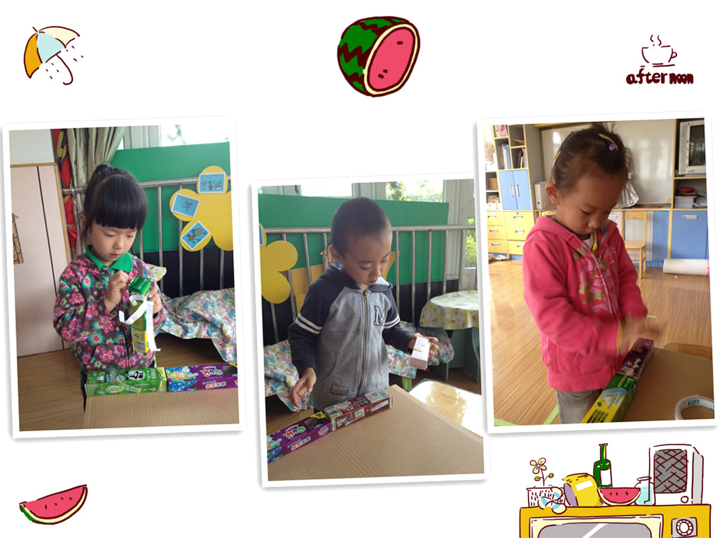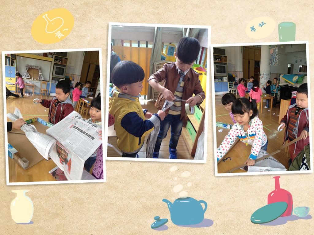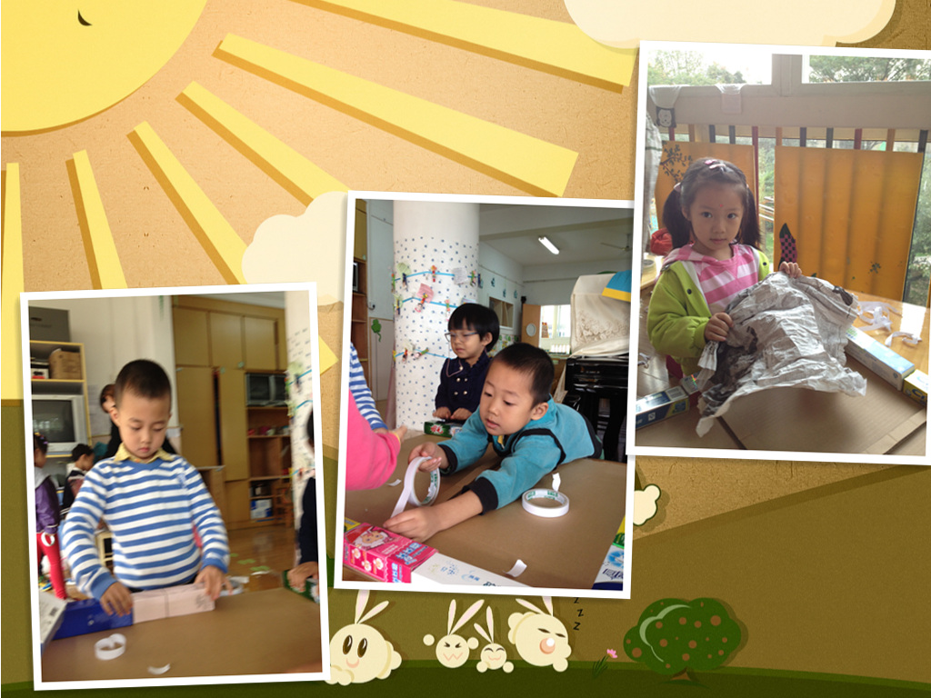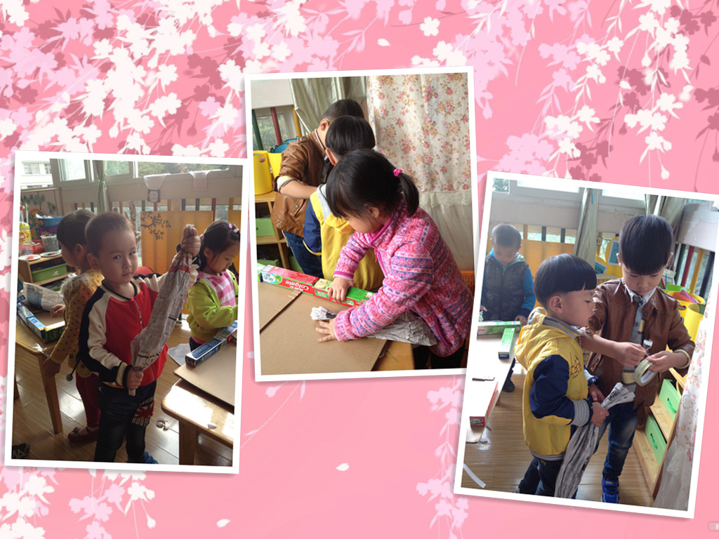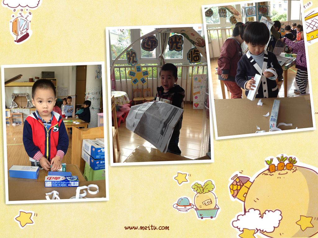 需要准备的材料很多哦!有牙膏盒子、双面胶、报纸、硬纸板、颜料,看我们动手做的多认真!