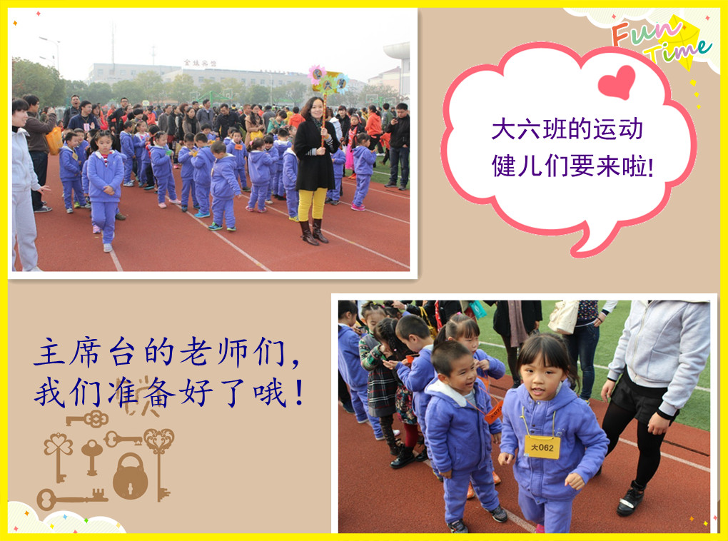 大六班的小可爱们要来了哦,主席台的老师们,等着我们哦!