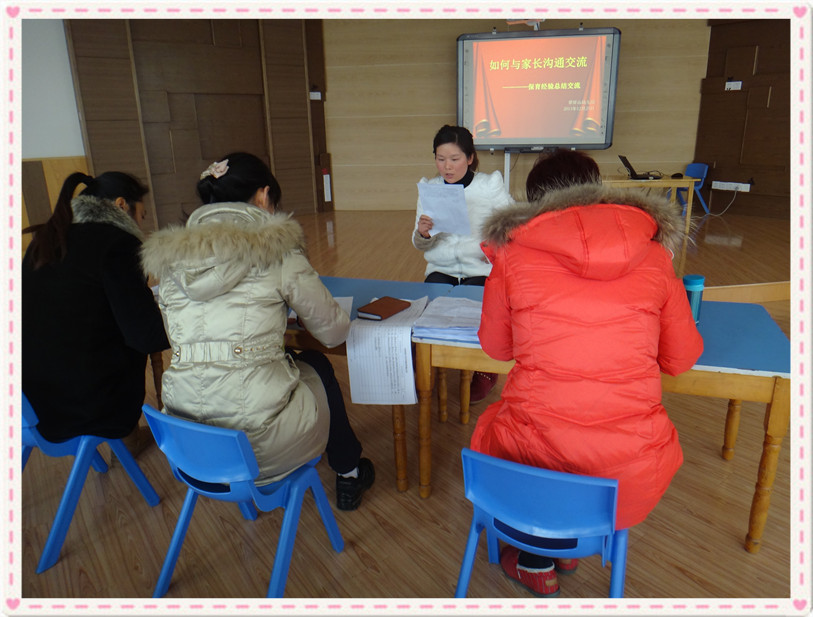 翠屏山幼儿园组织保育员学习交流 ——“保育员如何与家长沟通交流” “加强培训 提升素养 ”让保育员从勤杂工转换为教育者,是翠屏山幼儿园本学期加强保育员队伍建设的重点工作。随着“两教一保”的配备,越来越多的家长对幼儿园保育提出了更高的要求,教育的发展也对保育员提出了新的挑战。本学期翠屏山幼儿园制定的保育员岗位培训计划主要是围绕“保育员如何与家长沟通交流”,从第一期的“关注幼儿饮食习惯,讨论如何与家长沟通”培训到第二期的“针对班级肥胖儿、体弱儿,讨论与家长沟通策略”等;一次次学习让保育员从日常保育工作中去实践、去反思。学期末,再结合一期的学习组织保育员围绕“如何与家长沟通交流”谈护理经验、谈体会。整个培训有正面的、反面的案例,在案例互动分析中,保育员们畅所欲言,受益匪浅。我们总结出与家长沟通交流的技巧和方法:“尊重、真诚、赞扬、微笑。”让我们携起手来,付出真心、诚心和贴心,密切家园关系,促进家园共育。 |
