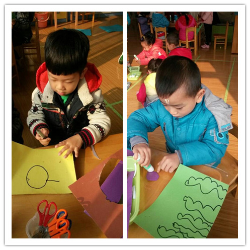 我画的海鱼好看吗?瞧我剪的也很认真啊!