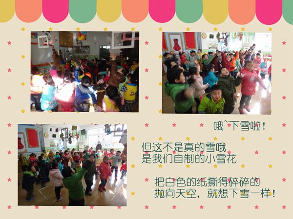 下雪咯~下雪咯~大家快来呀!我们的雪花可是与众不同的,是我们自制的哦!快来看看吧!